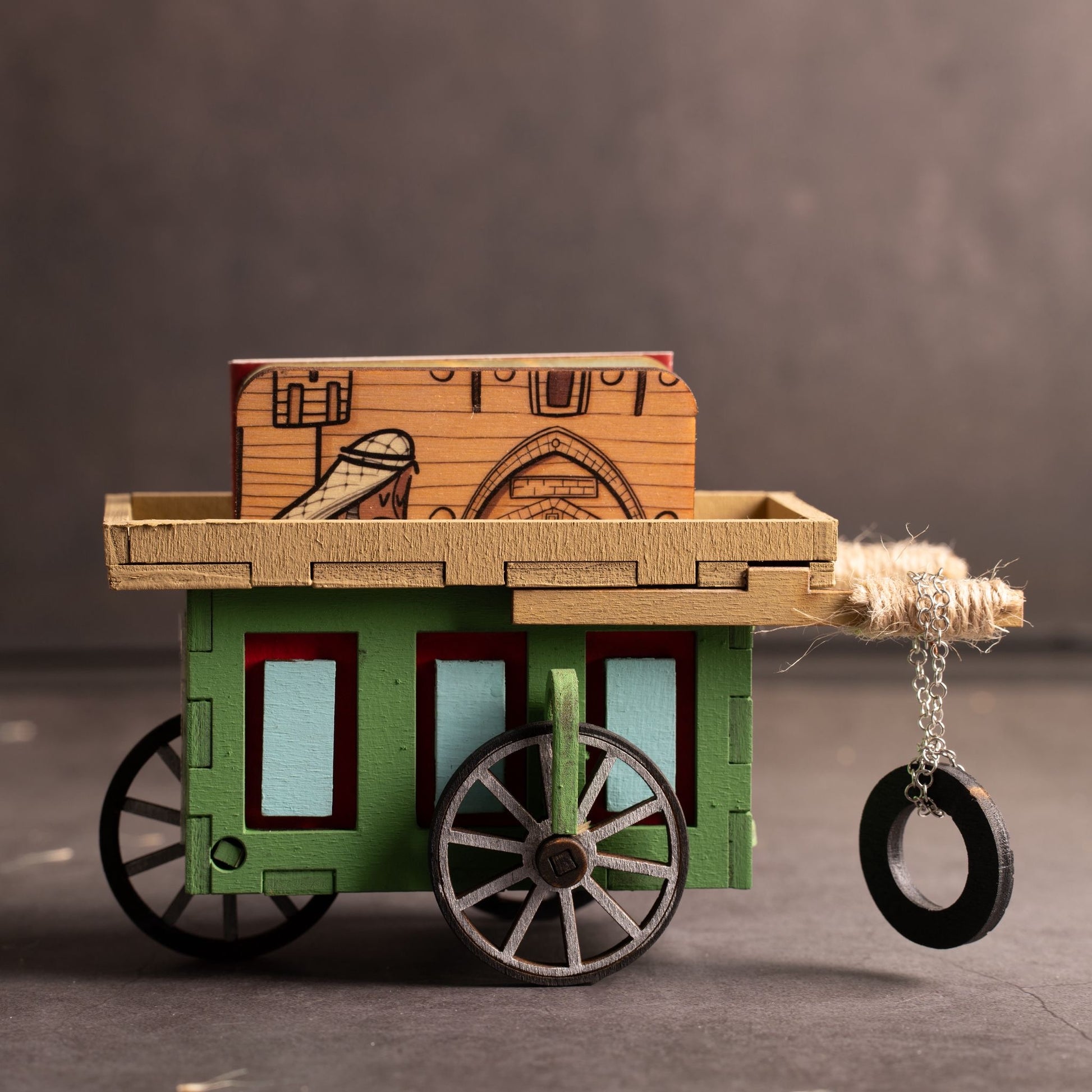 This handcrafted set features a beautifully painted trolley made of willow wood. It includes four wooden coasters printed with original hand-drawn illustrations that reflect the charming streets, architectural details, and cultural lifestyle of the Old City of Jerusalem.