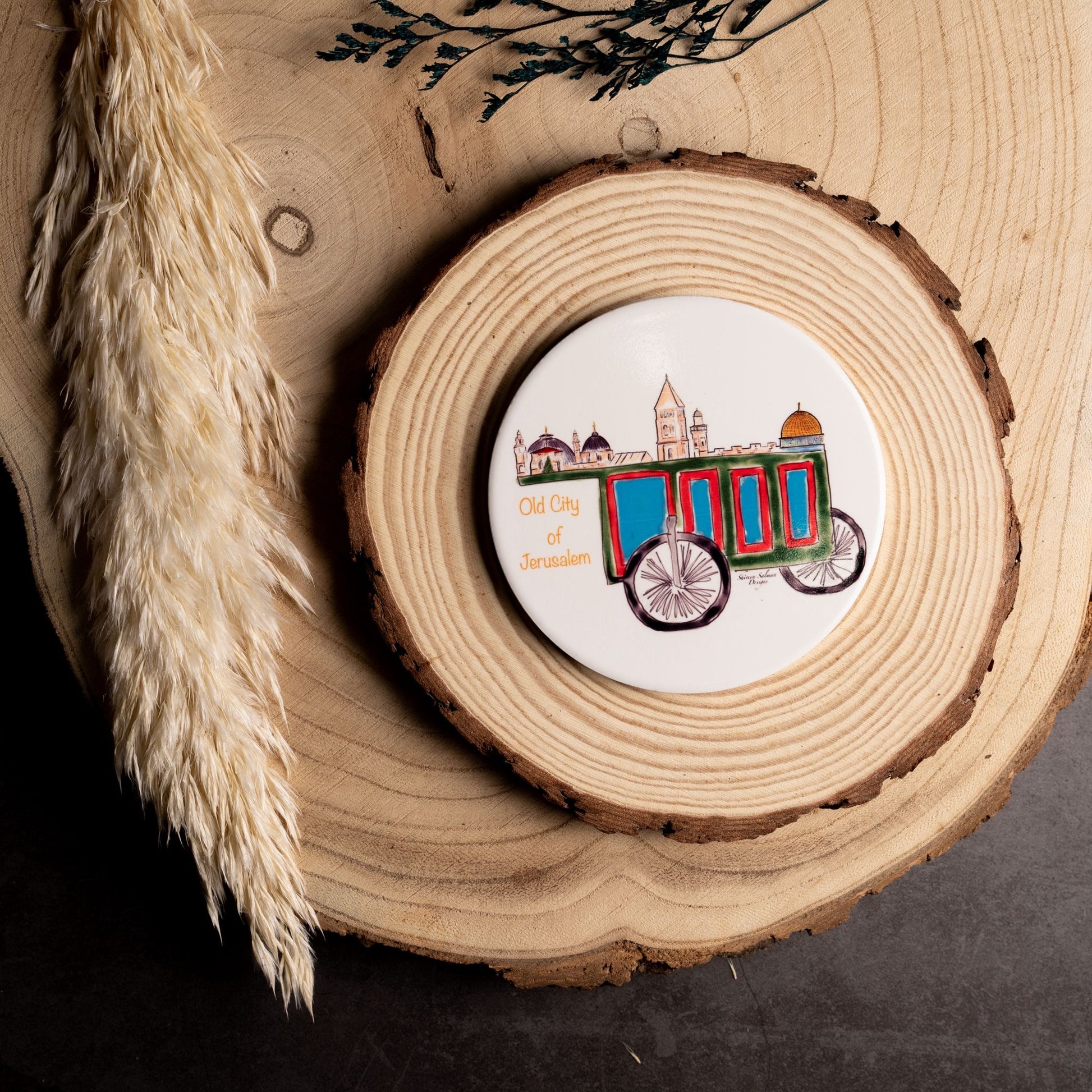This ceramic coaster features a sublimation-printed design with decorative patterns and is backed with a natural absorbent cork base.