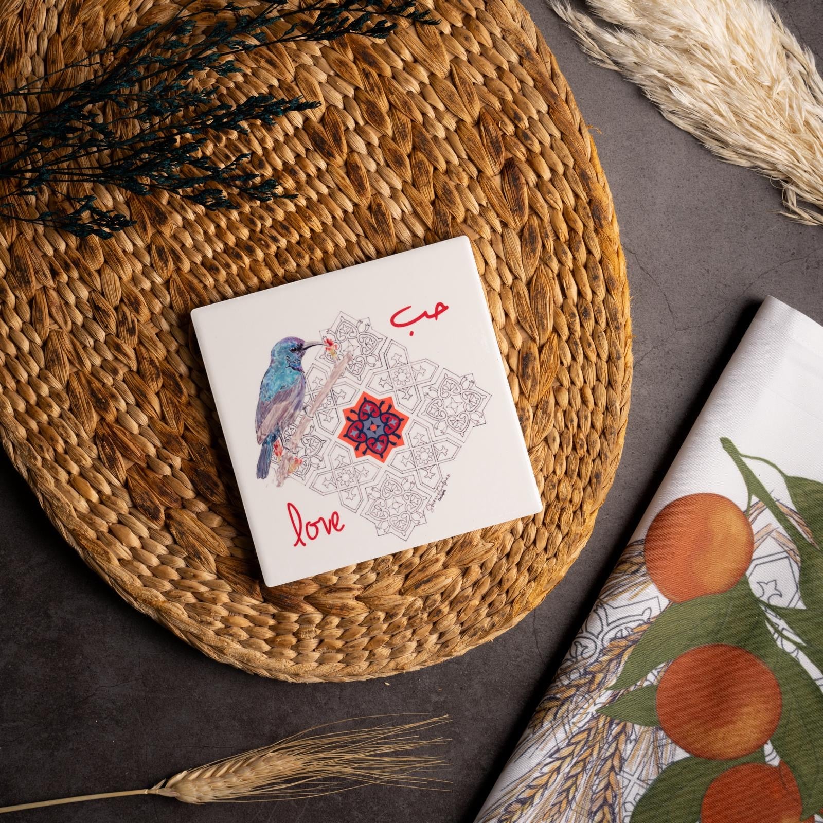 This ceramic coaster features a sublimation-printed design with decorative patterns and is backed with a natural absorbent cork base.