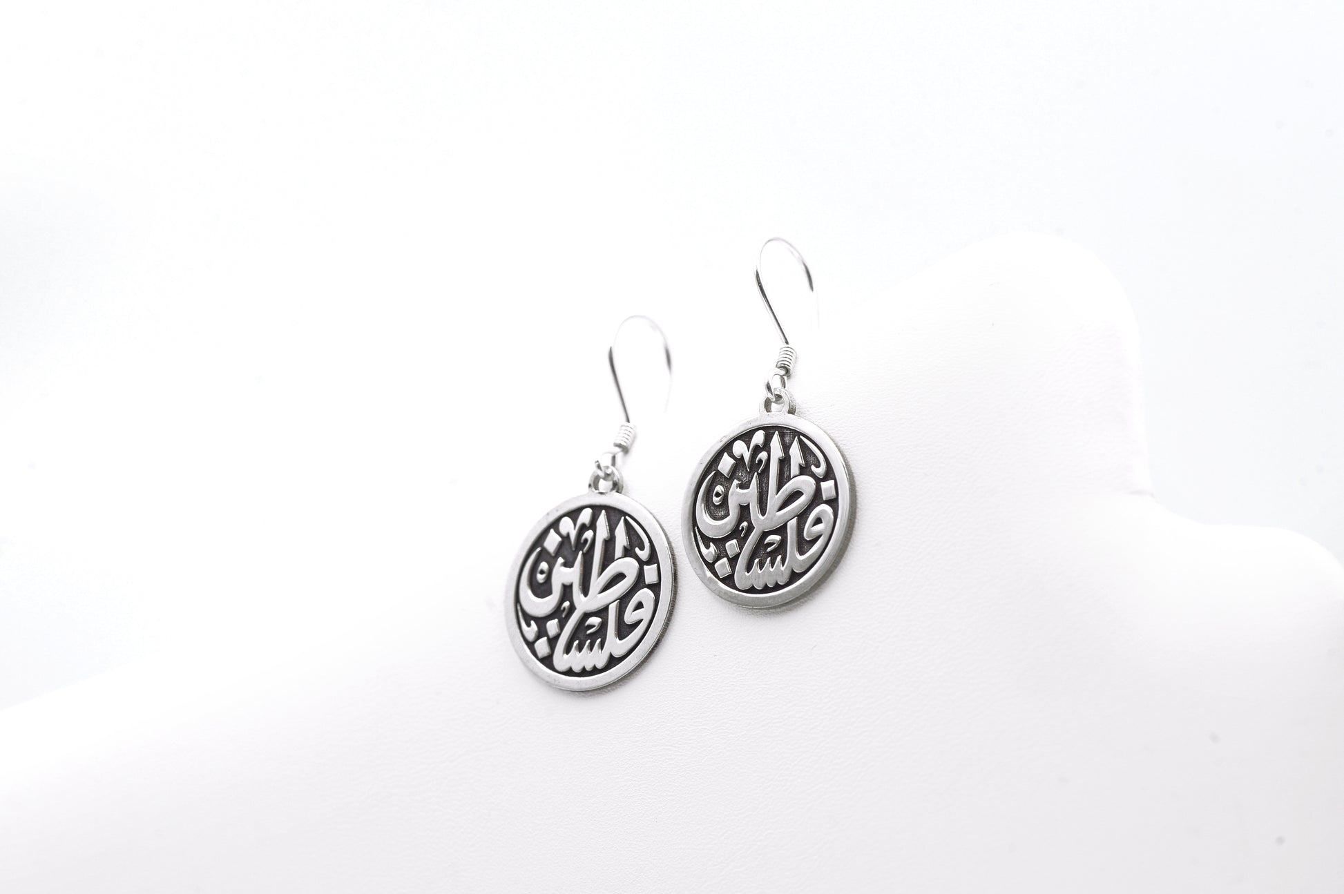 Beautiful handmade Earrings featuring Palestine Arabic Calligraphy. Made from high-quality 925 silver.