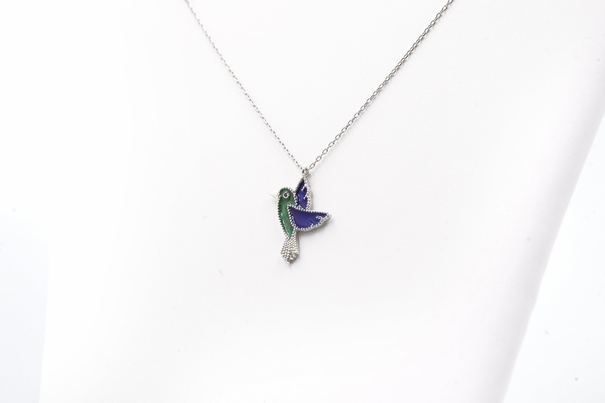 A beautiful handmade pendant with a chain featuring the Palestinian Sunbird. Made from high-quality 925 silver.