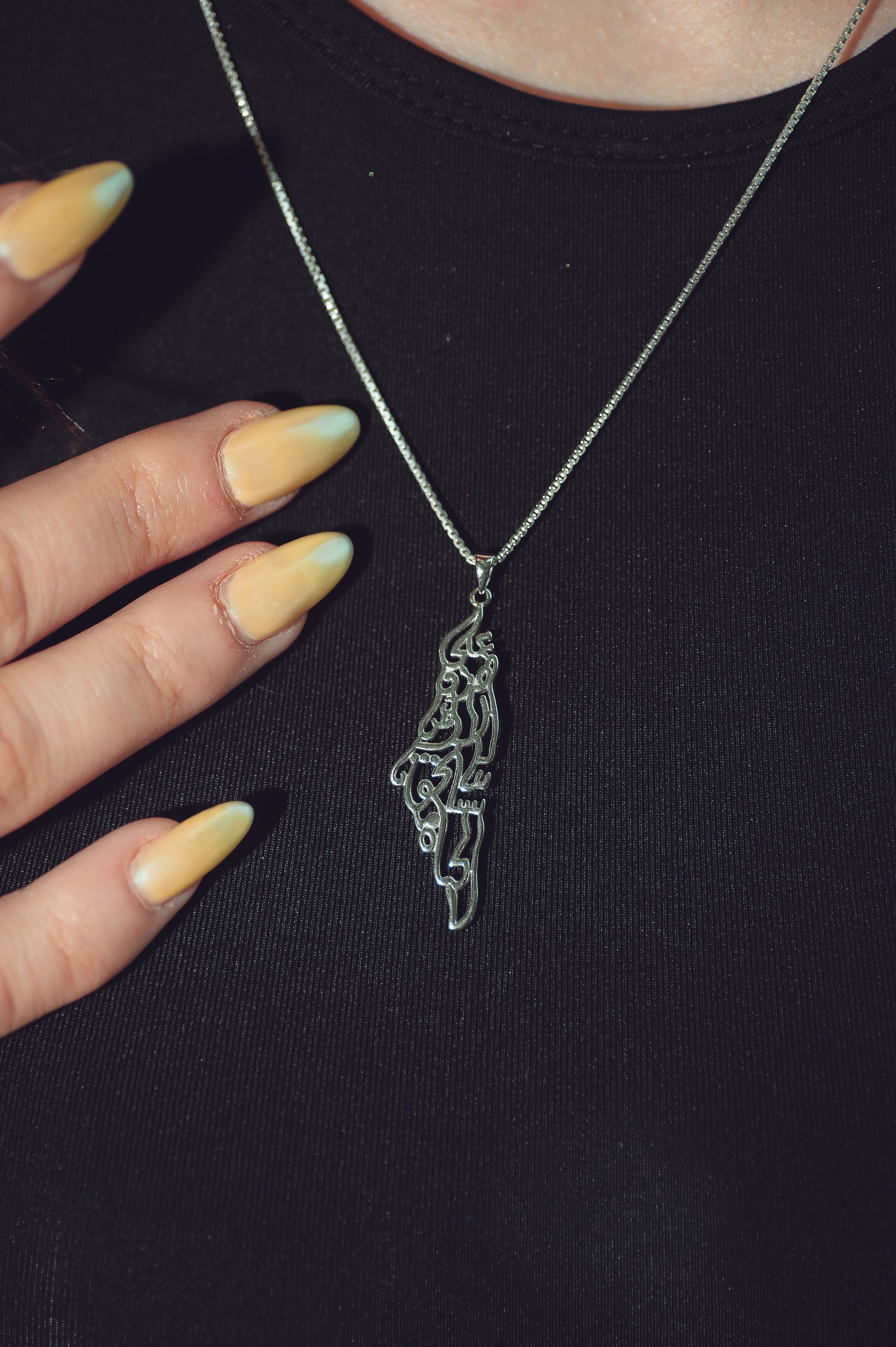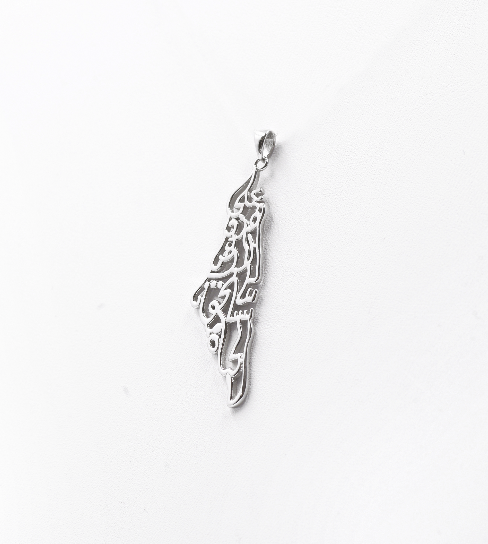 A Beautiful handmade pendant featuring the Map of Palestine. Made from high-quality 925 silver.