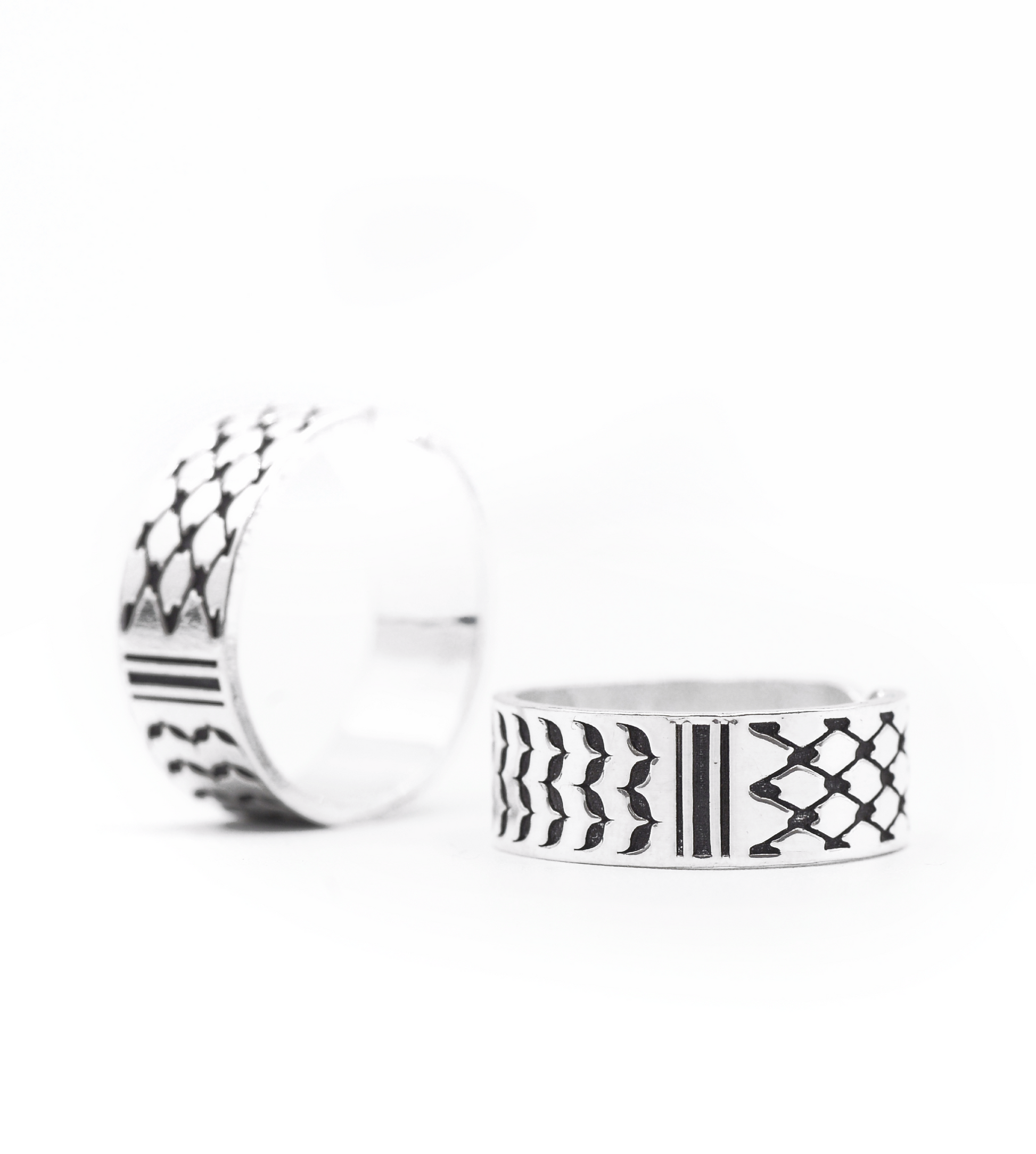 A beautiful handmade adjustable ring featuring the Palestinian Kuffiyeh. Made from high-quality 925 silver.