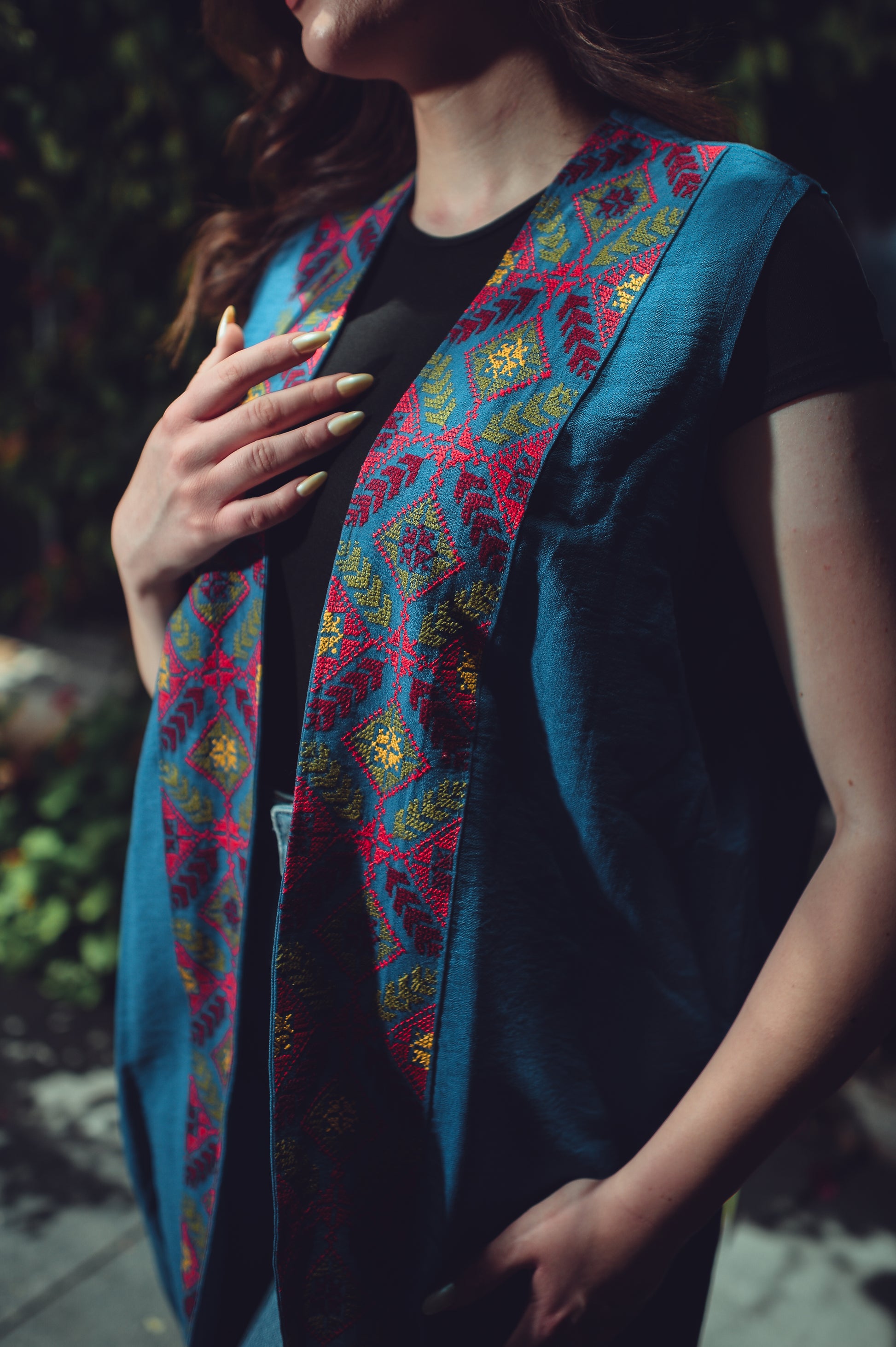 Long Vest with Colorful Front Embroidery