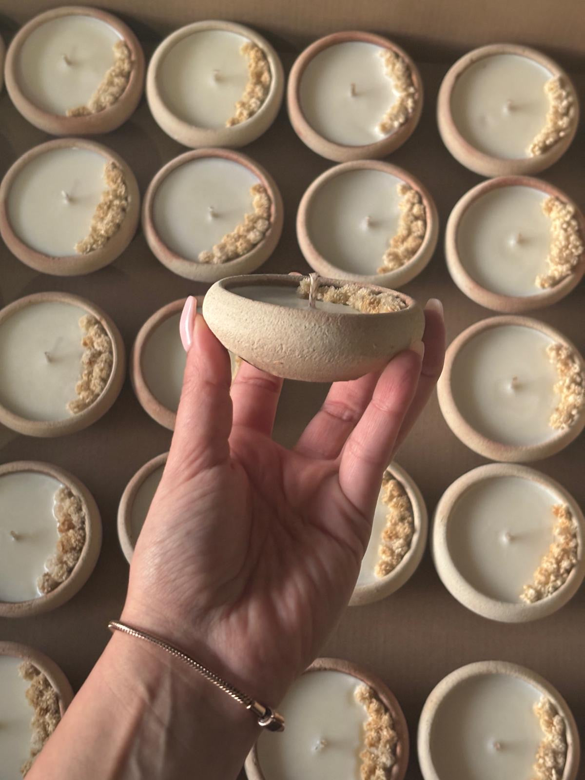 Palestinian handmade candles with 100% natural wax. Each piece is wrapped with tulle.