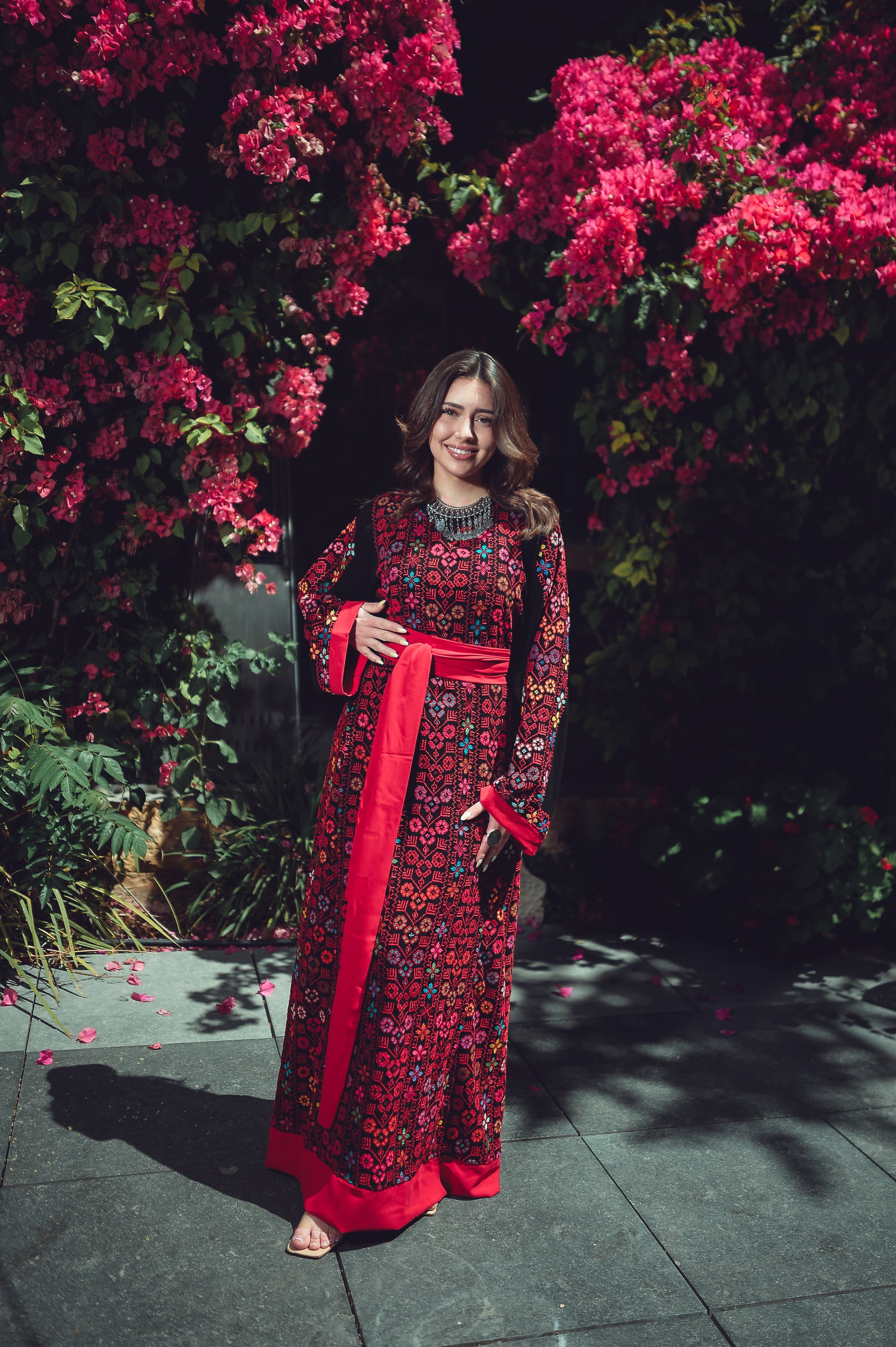 A luxurious celebration of tradition and elegance. This ready-to-ship thobe is crafted from smooth, premium silk that flows softly with every movement. Adorned with delicate floral embroidery that honors Palestinian heritage, its intricate patterns bring a fresh, natural beauty to this timeless garment. The matching silk belt elegantly cinches the waist, creating a graceful silhouette that blends classic charm with modern refinement.